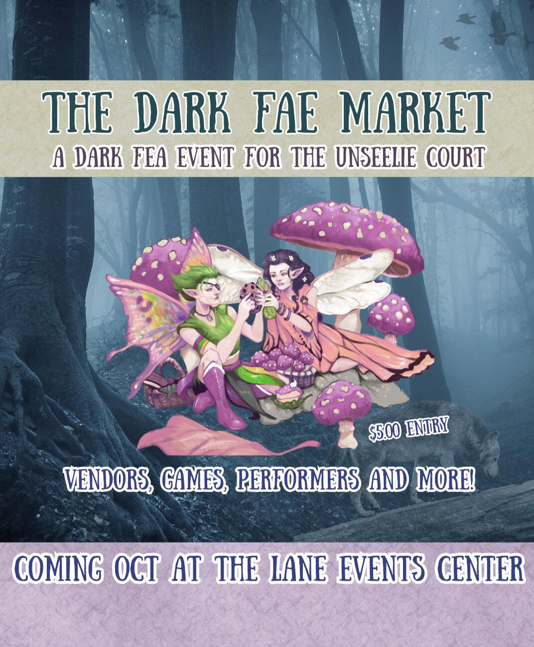 Lane Events Center, Eugene, OR (Wheeler PavilionA gathering of the Unseelie court. Perfect for lovers of all things spooky fey. Join us for all ages trick-R-Treating, turnip lantern carving, live performances and more.Featuring: DND live show, games, crafts, vendors.