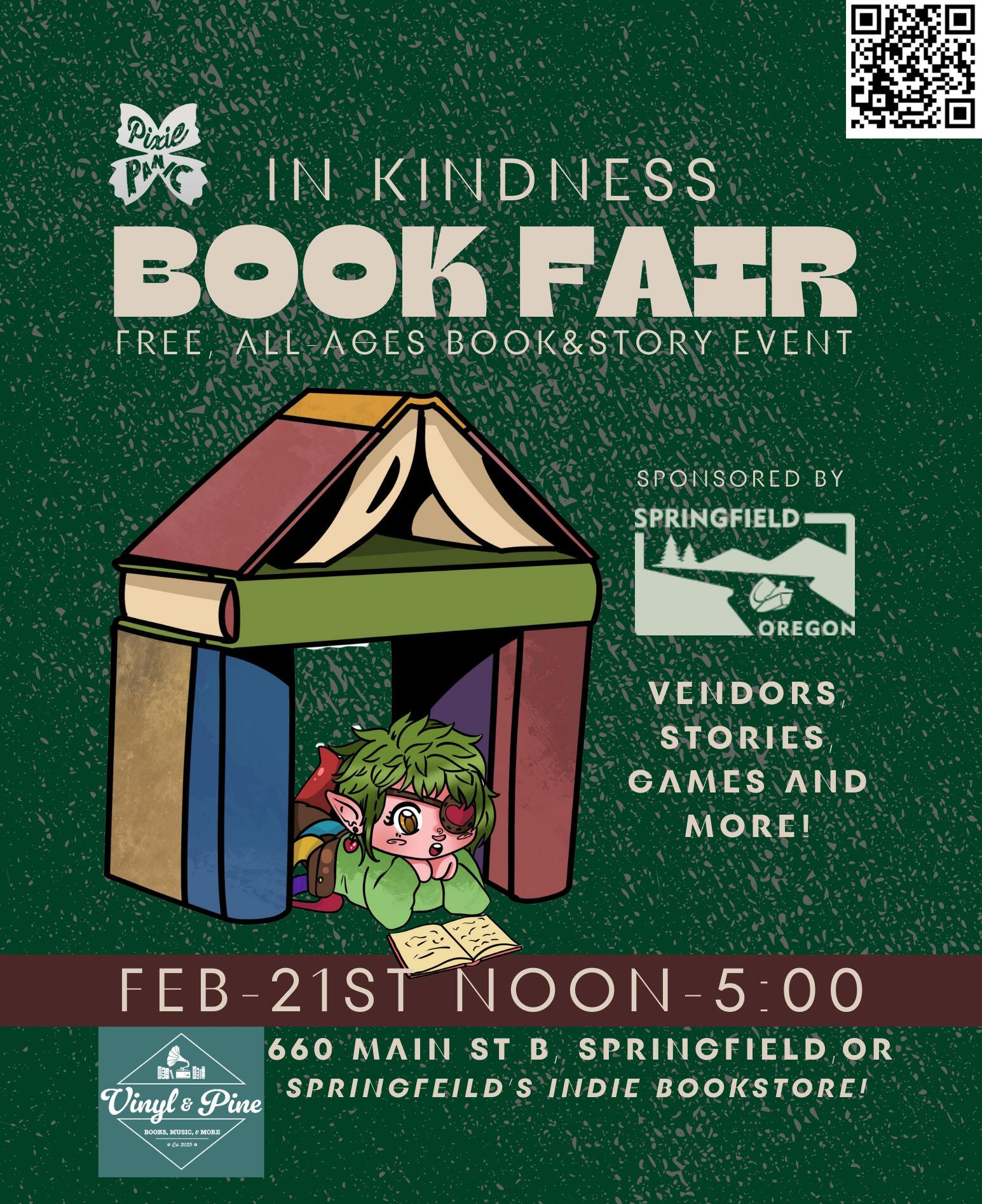 660 Main St B, Springfield, ORThe City of Springfield has sponsored Pixie Panic's upcoming In Kindness Book Fair. Join us for a day of book themed games, crafts and more!Featuring Rabbit story hour with Bloom the Faerie and rescue bunnies from Little Critter Crew!